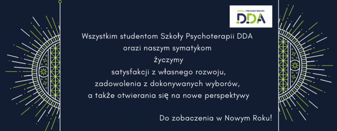 Ostatni rok był pełen wyzwań, niepokoju, zmian i nieprzewidzianych zwrotów akcji. Również w Szkole doświadczaliśmy tego, podejmując wciąż nowe wyzwania i kolejne decyzje. Wierzymy, że kolejny rok będzie dla nas i dla Was lepszy od tego ostatniego - rekrutujemy też studentów do V i VI już edycji Szkoły Psychoterapii DDA - i czekamy, na Was na jesieni przyszłego roku na I roku. Szczegóły rekruracji i harmonogram znajdziecie w zakładkach program i rekrutacja!