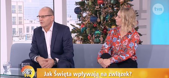 W filmach świątecznych panuje zwykle sielankowy klimat. W rzeczywistości nasze stosunki z bliskimi nie zawsze układają się idyllicznie. A że okres świąteczny to szczególny moment refleksji, wówczas staramy się naprawić atmosferę w domu oraz stosunki z partnerem. Czy święta mogą poprawić relacje w związku? Zapytaliśmy o to naszych gości. W studiu Dzień Dobry TVN gościliśmy aktorkę Paulinę Holtz i psychoterapeutę Cezarego Biernackiego.
